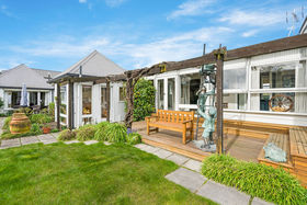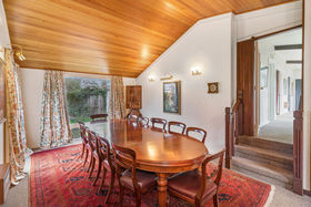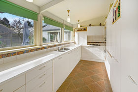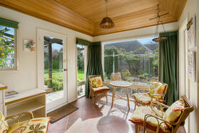 A sunroom, used as a casual living space with great access to the garden opens from the formal lounge room which is resplendent with a large mantel and log burner. The formal dining room is an elegant space with easy access to the sunny kitchen and kitchenette which also opens to the garden and patio.