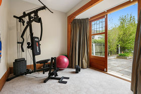 Accommodation is peacefully located on the lower level and includes four double bedrooms and a single bedroom, the latter of which could easily be utilised as a study. Both the master and guest bedrooms benefit from an ensuite, while the master also boasts the inclusion of a casual living zone which is currently set up as a gym and has French doors opening onto the patio.