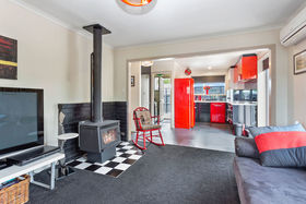 An open plan, retro style kitchen/living area with double glazed bi-fold and double doors which access the large wrap around deck. The spacious outdoor entertaining areas offer indoor/outdoor flow for entertaining to the max!