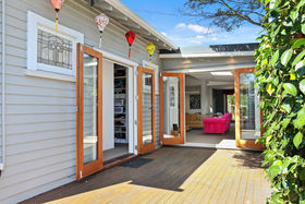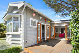 The master bedroom has been cleverly configured to include a stylish tiled en suite & walk in wardrobe, it also has doors opening to a sheltered deck which captures the afternoon sun. Two further bedrooms are conveniently close to the family bathroom; the single bedroom has an adjoining living space which is currently set up as a games & TV room for the children of the house.