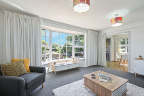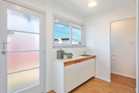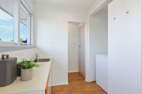 Once inside you will love how light and warm it feels. The sun streams in through the bay window to the spacious lounge and this flows through to the kitchen and dining, where a sliding door opening onto the deck gives a lovely view out to the garden. The kitchen is roomy, light, bright and fresh with up to date appliances. There's storage aplenty, lots of bench space and a breakfast bar perfect for that morning coffee. The laundry is in behind with a door to the outside.