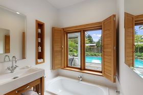 Very appealing four bedroom homestead, architecturally designed by Roy Lovell-Smith. Immaculate throughout and perfect for family living and entertaining. Features include polished timber floors, feature ceilings, leadlight windows, designer kitchen, superb indoor/outdoor flow to in-ground pool and large deck area, ensuite bathroom off master bedroom, brand new recently installed hardwood Kwila deck surrounding the pool and spa entertaining area.
