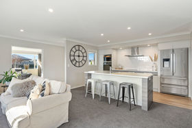Warm and sunny separate lounge with lovely views to the Port Hills.
