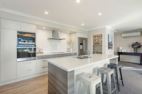 Stylish, centrally located kitchen with tiled splash-back, quality appliances and butler's pantry.