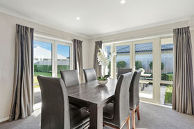Spacious living with dedicated dining and doors to the patio/BBQ area.