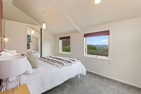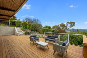 A welcoming entrance flows into the large living area with wall to wall sliding doors opening out onto the newly extended deck giving you 180 degree vista encompassing a rural view.