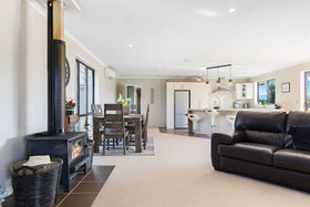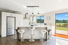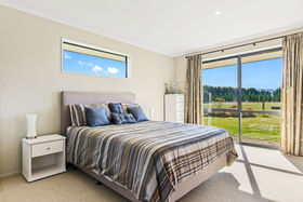 The open plan style allows for easy living with a second living area ideal as a media room or retreat for relaxation. Modern and well equipped, the kitchen is a central hub within the home. All of the rooms are generous in size. The master has a walk-in wardrobe, ensuite and doors that open to outside deck that runs along the front of the home. Warmth is assured with a wood burner, a heat pump, underfloor heating in the bathrooms and a heat transfer system.