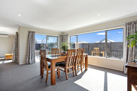 A well-appointed kitchen is at the heart of the home with a large central island and breakfast bar perfect for casual dining and entertaining. Currently used as a dining area, there enough room to create a further living space should you wish to do so. Doors lead out to a patio area which will be a sheltered spot for summer BBQ's in the months to come. The separate lounge is sunny and warm and also opens out to the courtyard and garden. The spacious master bedroom has an en-suite and walk in wardrobe, three further double bedrooms share the family bathroom which features a bath and separate shower. This home is fully fenced and the double internal access garage provides convenience and security.