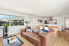 Check out our full walk-through video for a true, realistic sense of how lovely this home really is. It's difficult to find a point of difference in a new home in a new subdivision sometimes; but you've lucked in here. Our owner has that special design eye that has been used to completely maximise the floor area to its absolute best. Minimal hallway space means every available inch is used for living. Step onto durable and attractive laminate, wood-look flooring in the main family living area but carpet is in all the right places for comfort and warmth in the bedrooms and the second living space. Stacker doors open out onto a large entertaining deck with a north-west orientation for ultimate sunshine time for family BBQs. The kitchen and bathrooms are nicely appointed including soft-close joinery, a sleek, no-handle finish and great storage. An internal access garage adds convenience and generous off-street parking for guests and toys is a bonus. Get in now and be in before school starts next year if you're eyeing up the fabulous Marshlands Primary School.