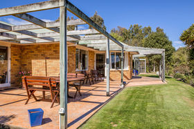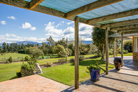 Appealing and well presented, the home has two living areas, a well appointed kitchen, five bedrooms with one presently set up as an office. The master suite has an ensuite bathroom, walk in wardrobe and doors opening out to the patio. Outdoor living is a feature of the home, easy to see why the present owners have enjoyed so many wonderful evenings on the patio looking out over the land with the horses grazing.