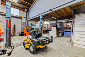 The main shed has a very large workshop space with concrete floor plus a bathroom that includes a shower and toilet as well as office facilities. The shed has two mezzanine floors.