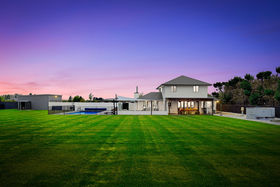 The private grounds that surround the home are 5,373sqm in size and feature established quality lawns, a well-designed berm with mature plantings and a range of fruit trees. It's easy to imagine a family enjoying the space with a game of cricket or running around with pets.