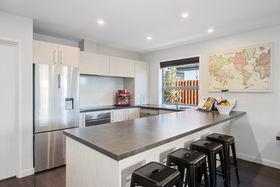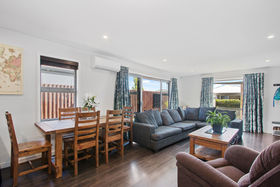 Modern living/dining/kitchen is open plan with vinyl planking, recessed lighting throughout and a ranch slider for good indoor/outdoor flow to the patio ready for the sun to shine through. There is a heat pump for year-round temperature control and underfloor heating in the two bathrooms with two toilets. Three good sized bedrooms including the master with an ensuite with a shower while the main bathroom has a separate shower and a luxurious deep bathtub providing great soaking options for both the young and older.