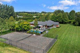 Outdoors, the property unfolds into a standout lifestyle setting. A heated in-ground swimming pool, outdoor fire, asphalt tennis court, sweeping lawns, mature trees and shelterbelts, and a feature pond attracting birdlife combine to create a private, picturesque environment that can be enjoyed year-round.